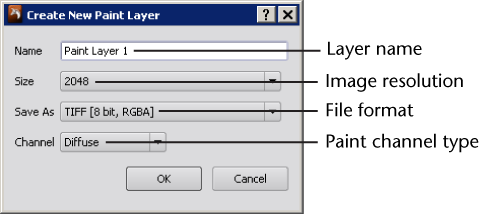 paint on a model, the Create New Paint Layer window