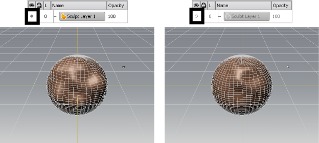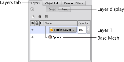 displays both sculpt and paint layers (but not simultaneously) and