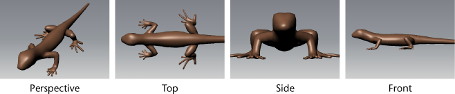default (Perspective, Front, Top, and Side) to view and evaluate