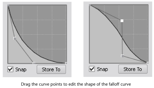 You can edit the shape of any of the the falloff curves in the Falloff section of the tool’s properties.