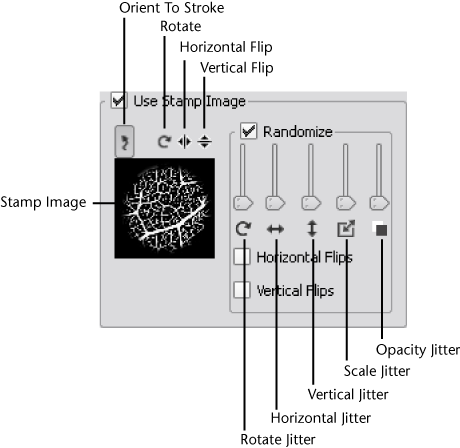 Note The selected stamp remains active on a sculpt tool until you click the Off button on the Stamp tray or turn off the Use Stamp Image property in the sculpt tool’s Properties window.
