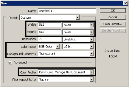 Mudbox supports several image formats and image bit depths for stencils and stamps. While images that are 8 bits in depth can be used, better results can be achieved with images that are 16 or 32 bits in depth. If you want to create stamps and stencils with an alpha channel (RGBA) that are 16 bits per channel you can use an editing application such as Adobe® Photoshop® :