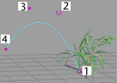 - ストロークの近くから始まりストロークから離れていくようなカーブを作成します。カーブ上に配置する制御点の順序によって、そのカーブで制御されるチューブの動きが影響を受けます。