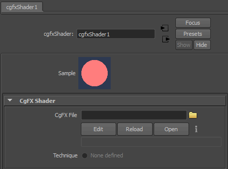 In the Attribute Editor of the cgfxShader node, you can use the Reload, Edit and Open buttons to work on the FX file you’ve specified.