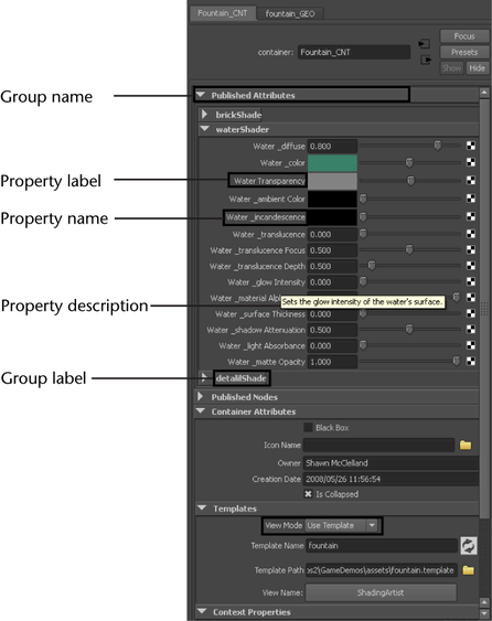 You can set up each view to display different tooltips as the users of your asset mouse over attributes in the Attribute Editor. This lets you display any information that will be helpful to your users.