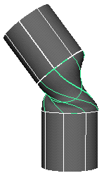 For instance, suppose you’ve created a blended surface from a pair of cylinders as shown in the following figure. The blended surface is the curving cylinder sandwiched between the top and bottom cylinders: