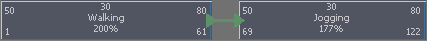 After creating a blend, you can edit its blend curve and weight value. The Weight attribute on the blend determines the amount of influence each clip has during the blend. For example, when a blend’s weight is 0.0, the first clip in the blend has all of the influence and when a blend’s weight is 1.0, the second clip in the blend has all the influence.