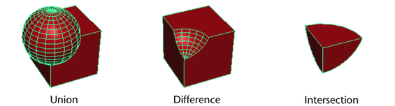 The following boolean operations let you combine polygon meshes to create a new shape.