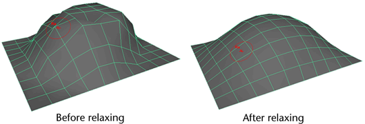 You can paint over bumps to relax the most out of place surface features. Unlike smoothing, Relax works by only averaging the largest surface anomalies so that the overall shape is maintained.