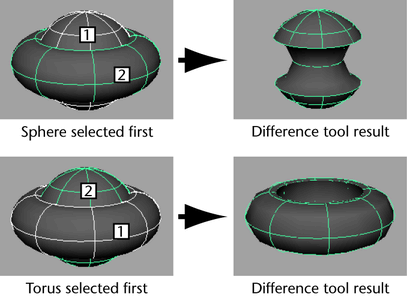 Boolean operations are actions that trim surfaces to create the appearance of a union, intersection, or subtraction between two objects.