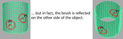 Notice there are now two, four, or eight brush outlines on the surface (depending on the number of reflection axes you selected).