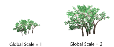 Use the Global Scale setting to adjust brush attribute values by a common factor. This scales the paint effect uniformly so you can paint the same effect, but in different sizes.