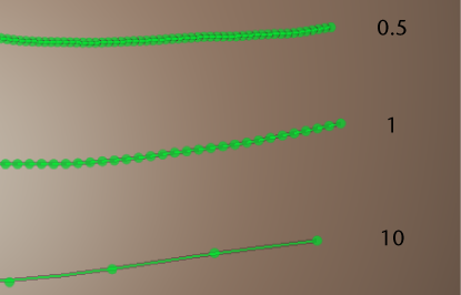 den Abstand zwischen Kurvenpunkten und bestimmt somit auf wirksame Weise die Auflösung der Kurve. Ein Pinsel mit einem kleinen