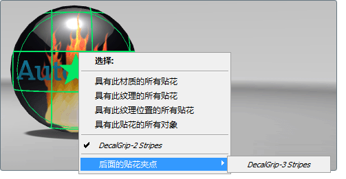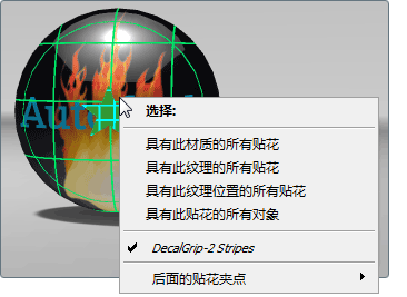 在贴花夹点上按住鼠标右键,将显示如下菜单: