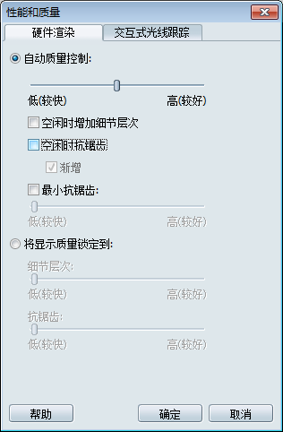 抗锯齿是一种用于形成曲面、材质和纹理外观的平滑计算。选择抗锯齿选项可使曲面具有更真实的外观,但是请注意,帧速率可能会受到影响。