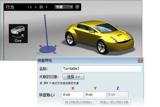 (或者,在“转盘特性”窗口中,单击“选择”按钮,然后选择菜单项“将当前选择添加到”。)选定的对象将包括在转盘动画中。