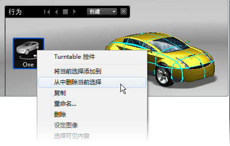 - 在“行为”界面中,选择转盘,单击并按住鼠标右键,然后选择“从中删除当前选择”。