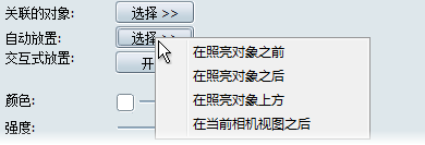 自动放置将基于当前相机到关联对象的距离和您所选择的放置方法,将重点照明的位置、方向和衰减距离设定为相应的值。
