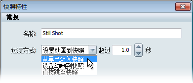在显示快照之前添加黑屏过渡。可以指定过渡时间(以秒为单位)。过渡时间不会增加快照的长度,而且它不能比快照长。