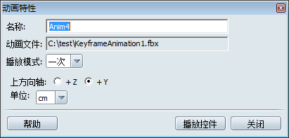 加载 FBX 动画文件后,“动画特性”窗口将打开。