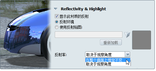 在以下示例中,将整个曲面上的反射率设定为常量。这会使得车漆看上去很奇怪,整个曲面上都分布反射。