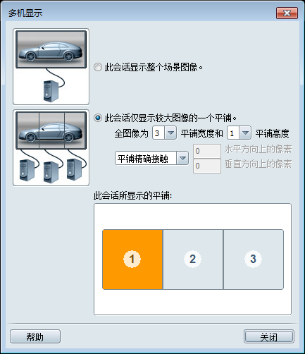 可以使用一系列计算机显示您的场景,其中每个计算机都连接到显示较大图像的一个平铺的显示器。
