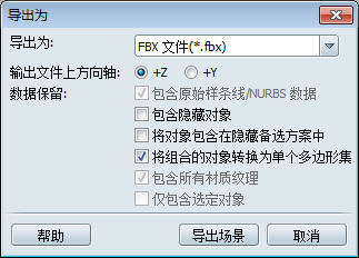- 选择输出文件的上方向轴,即 Z 上方向轴或 Y 上方向轴。