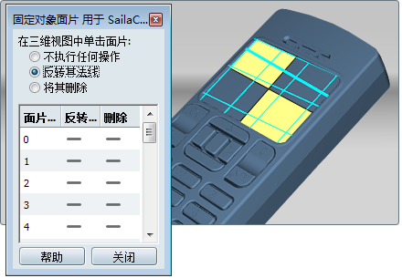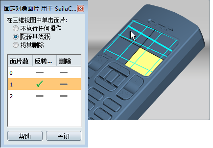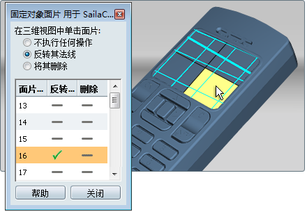 此时其面片编号将在“固定对象面片”窗口中高亮显示,同时在“反转”列下有一个对勾来指示更改。
