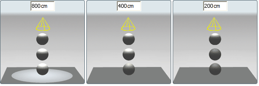 通过指定源大小设定此重点照明创建的阴影边和高光的柔化。基于从源到对象的距离,较大的尺寸将投射更柔和的阴影和高光。