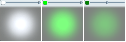 在对象上投射的灯光的颜色。单击示例方块以设定颜色。滑块设定颜色的值(从深到淡),还可缩放总体强度。