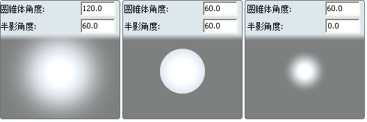 半影起点的边到边(或边衰减)的角度(以度为单位)。此值不能大于圆锥体角度。值等于圆锥体角度会产生硬边光锥,而值为零将从圆锥体的中心开始形成半影。