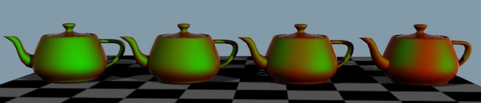 lit_color_bias defines the falloff rate of the color towards the light. The useful range is 0.0 to approximately 10.0, where the value 0.0 turns the effect off. Higher values makes the colored region facing the light smaller/narrower, lower values makes it larger/wider. The overall level of the diffuse parameters can be tuned with the diffuse_weight parameter.