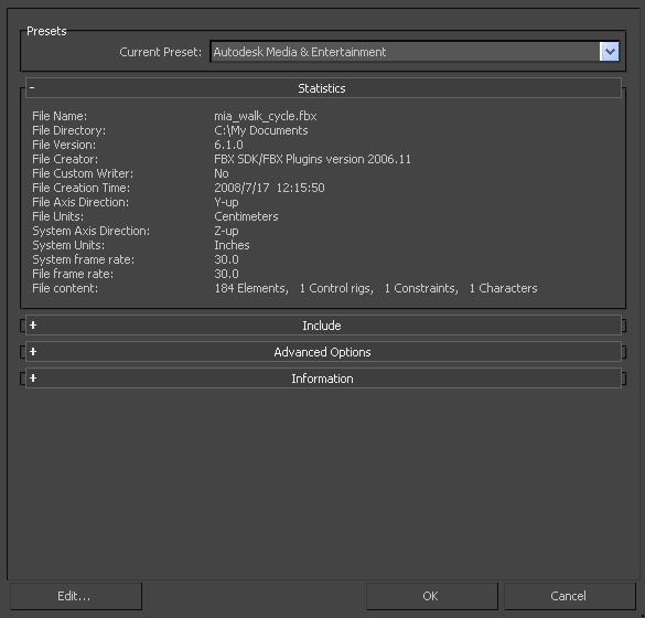 This chapter contains information about options you can use in the 3ds Max FBX Plug-in importer window.