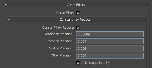 | Auto tangents only | This option ensures that only “auto” key types are filtered. Otherwise, keys with interpolation values greater than a certain threshold might be deleted. |