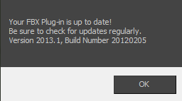 If a newer version of the 3ds Max FBX Plug-in exists, a window appears to inform you.