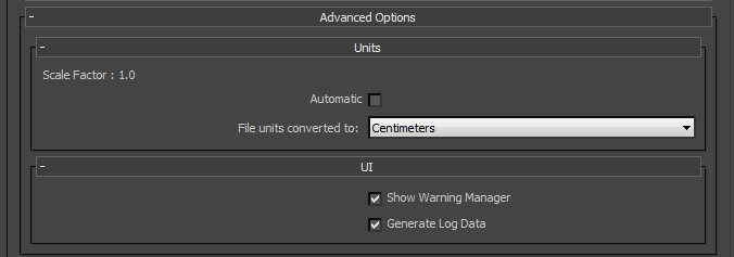 Use the Advanced Options rollout to customize your general settings and import process.