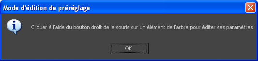 - Une boîte de dialogue s'ouvre pour vous informer qu'il faut cliquer avec le bouton droit sur l'élément de l'arborescence pour