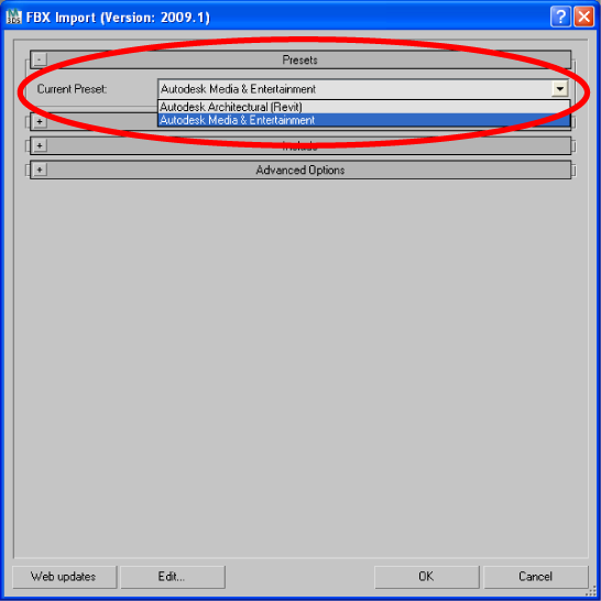 The 3ds Max FBX Plug-in includes two import workflow presets: