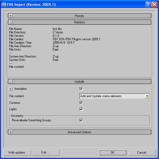 This chapter contains information about options you can use in the 3ds Max FBX Plug-in importer window.