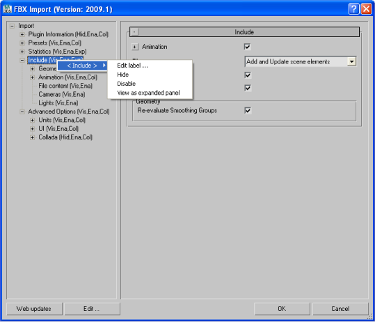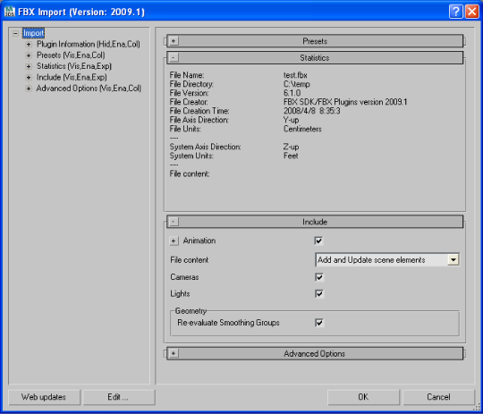 the FBX options in the left section.
