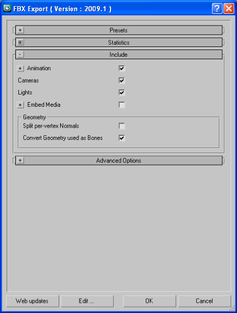 The Include rollout lets you decide what data and conversions the plug-in applies to your scene at export from a host application.
