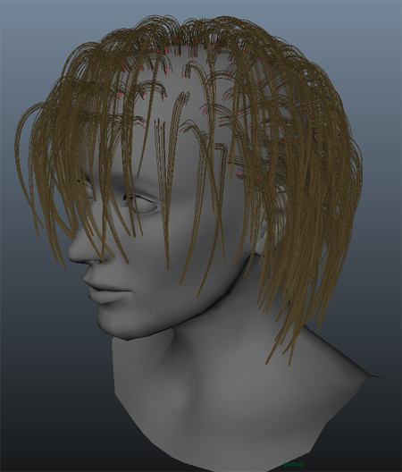 After playing the nHair simulation, you can see the hair style beginning to take form, however there are several areas of hair that look too thin and patchy to be considered a realistic hair style.