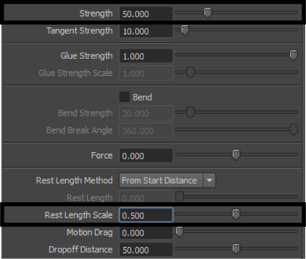This setting decreases the length of the constraint connections at the start frame of the simulation.