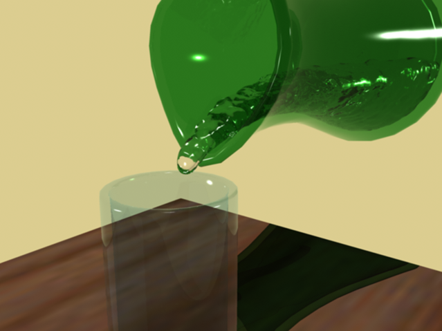 In this lesson you create a small-scale liquid simulation that involves pouring Water type nParticles from a pitcher into a glass. You can then use the techniques described in this tutorial to create larger liquid simulations.