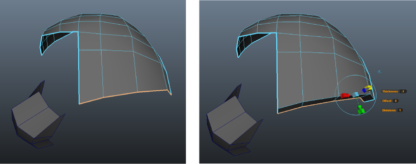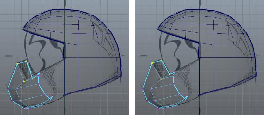 When you are finished, a gap will exist between the last extruded segment of the lower region and the helmet mesh.