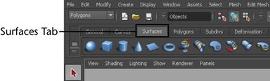 The Shelf is located directly below the Status line. The Maya Shelf is useful for storing tools and items that you use frequently or have customized for your own use. You can keep the tools and items you use most frequently in a location that provides handy access. Maya has some of the Shelf items pre-configured for your use.