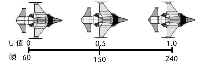 通过设定帧编号和“U 值”(U Value),然后设定关键帧,可以更改飞机沿路径的运动的计时。