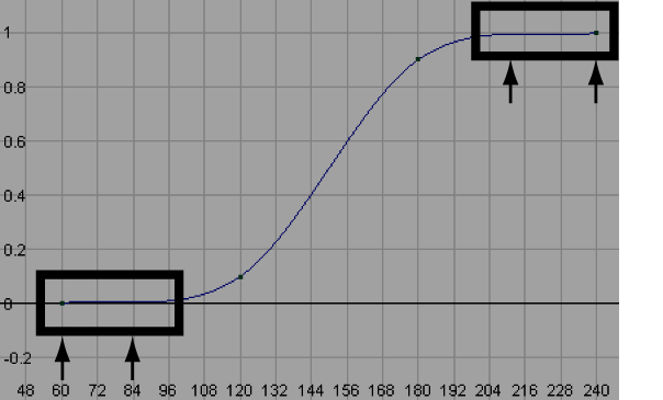 以这种方式修改切线会更改运动的过渡方式,因为曲线会在经过关键帧时更改方向。飞机将平稳加速,而不是立即以不同速率移动。