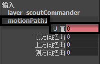 motionPath1 的属性显示在“输入”(Inputs)列表的底部。(如果 motionPath1 属性并不完全可见,请滚动“通道盒”(Channel Box)窗口)。