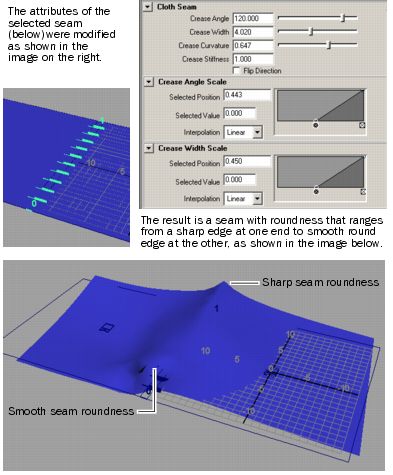 Use these attributes to control the bending characteristics at a seam, for example, along the hemline of a skirt. Change the Crease Angle attribute to activate the others.